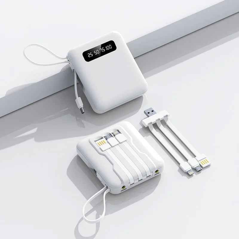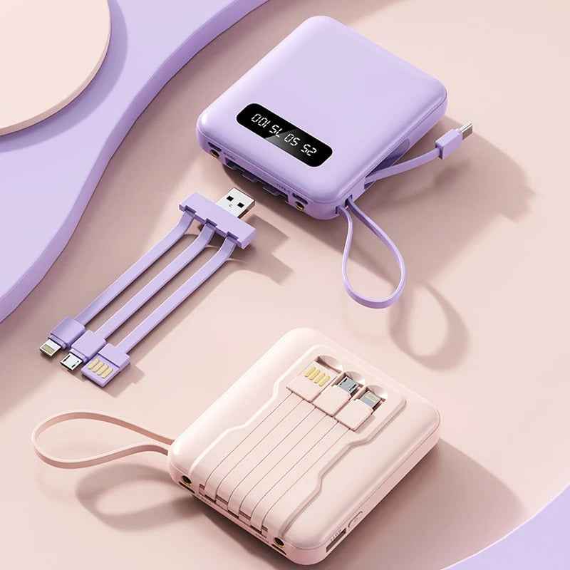 Este no es solo un cargador, sino un accesorio de estilo que combina perfectamente con tus dispositivos. Disponible en colores modernos y elegantes, el power bank con cable integrado no solo es funcional, sino también un complemento estético para tu colección de tecnología.